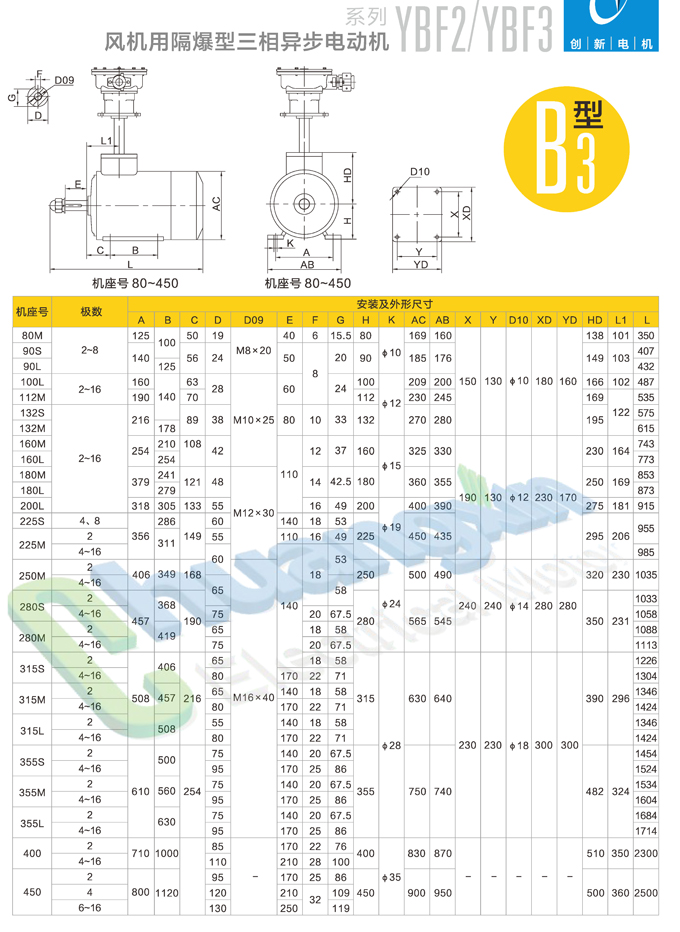 > YBF2YBF3風(fēng)機用防爆三相異步電機